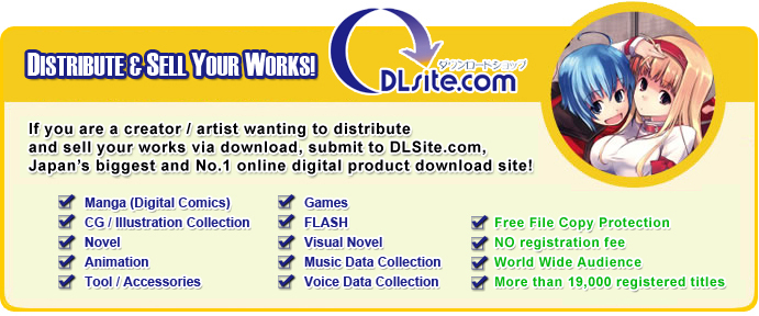 A few months back DL Site began allowing international submissions, which is something I was pleasantly surprised about. It's not so much a matter of quality, as I know that a lot of the work submitted to DL Site so far is not what one might call the most... technically sound, but it's the thought and spirit that count.*