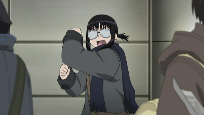 The episode devoted far more time to Ogiue's fantasies than Kio Shimoku did in the original manga, but it provides me, the viewer, with such a strong understanding of what's going on inside the mind of sweet Ogi that I cannot help but appreciate it. I am no fan of yaoi, but that I was pretty much seeing her direct train of thought, (lightly) warped logic, and that I was pretty much in Ogiue's head provides me with a sort of joy that is both pleasant and visceral.